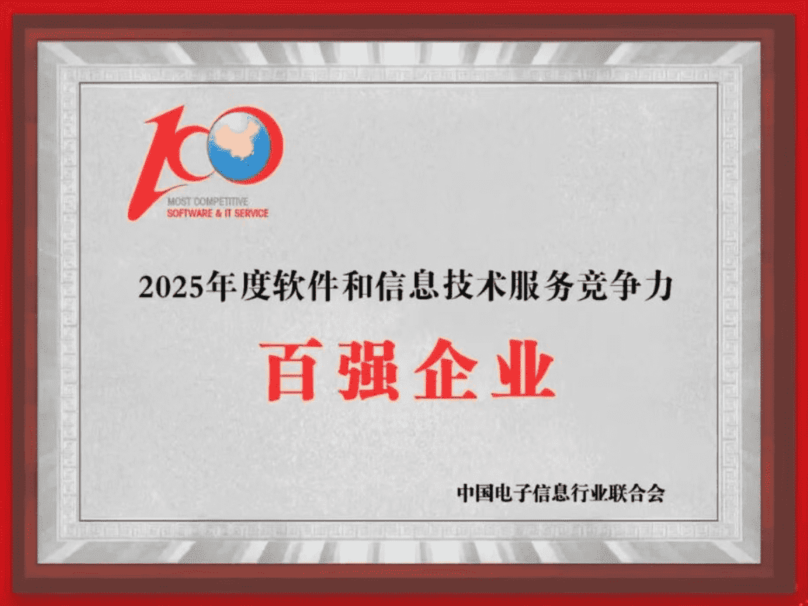 20251015日,,,中国电子信息行业联合会权威揭晓“2025年度软件和信息技术服务竞争力前百家企业名单。。中国软件百强企业评选活动是由工业和信息化部全程指导、、、、中国电子信息行业联合会牵头组织发起,,,,是反映中国软件产业发展最高水平的“风向标”。。厦门35273网络技术股份有限公司(以下简称“35273”或“公司”)凭借自身在软件技术领域的卓越表现与杰出创新能力,,,,第六次入选“全国软件和信息技术服务竞争力前百家企业”称号。。。