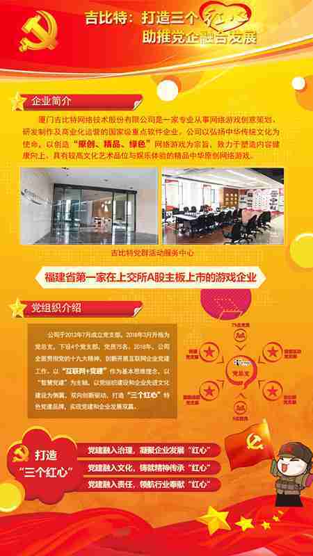 未来公司将全面学习贯彻习近平新时代中国特色社会主义思想和党的十九大精神,,,,持续强化“互联网+党建”的思维理念,,,以“智慧党建”为主轴,,,以党组织建设和企业先进文化建设为侧翼,,,,双向创新驱动,,,引领有信仰、、、有情怀、、、、有价值的新时代游戏研发运营,,在不断发展壮大的同时,,,成为行业的“红色标杆”,,实现党建和企业发展双赢。。。。
